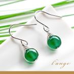 天然石 グリーン オニキス 純チタン ピアス ワイヤーラップ 金属アレルギー対応 レディース シルバー 日本製