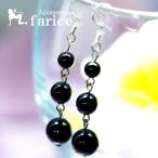 天然石 ナチュラルストーン 3連 ブラック オニキス シンプル フック レディース ピアス