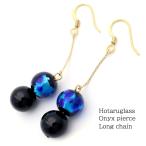 ホタルガラス ピアス レディース 2連 オニキス ブルー とんぼ玉 フックピアス 沖縄 お土産 琉球 敬老の日 贈り物 プレゼント ギフト 贈り物