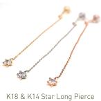ピアス レディース 金属アレルギー対応 K18 チェーン 星型 キュービックジルコニア スタッド ロング かわいい 揺れる おしゃれ 日本製 30代 40代 50代