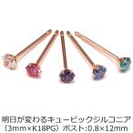 セカンドピアス つけっぱなし 18金 ピンクゴールド 明日が変わるキュービックジルコニア 3mm アレルギー対応 軸太 ロングポスト 小さめ 日本製 片耳 1個