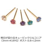 セカンドピアス つけっぱなし 18金 イエローゴールド 明日が変わるキュービックジルコニア 3mm アレルギー対応 軸太 ロングポスト 小さめ 日本製 片耳 1個