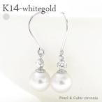 パール フックピアス キュービックジルコニア k14ホワイトゴールド 14金 アコヤ真珠6.5-7mm レディース アクセサリー