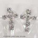 クロス 十字架 ピアス キュービックジルコニア k14ホワイトゴールド レディース ジュエリー アクセサリー