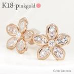 k18 ピンクゴールド フラワーピアス キュービックジルコニア スタッドピアス 18金ゴールド 花 レディース アクセサリー