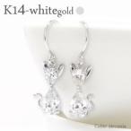 ネコ フック ピアス キュービックジルコニア k14ホワイトゴールド ペアシェイプ 猫 ねこ アメリカンピアス レディース