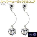 ピアス スーパーキュービックジルコニア プラチナ Pt900 ラウンド ドロップ チャーム風 揺れる シンプル スタッド 左右セット レディース シリコン製ダブルロックキャッチ