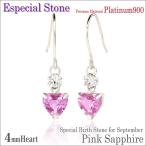 プラチナ pt900 ピアス 4mm レディース メンズ ハート ピンクサファイア キュービックジルコニア フック 9月 誕生石 スペシャル 脇石 ダイヤモンド 可能 ピアス