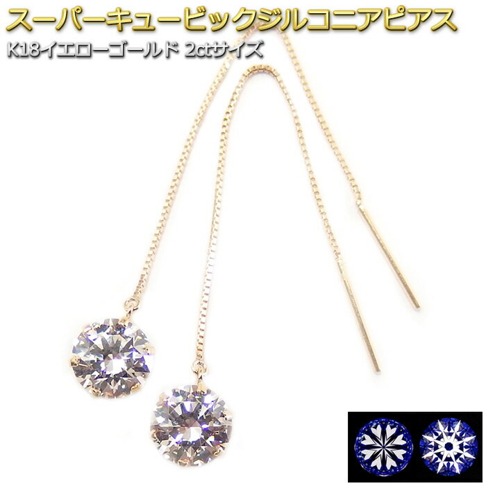 ピアス スーパーキュービックジルコニア アメリカン K18 イエローゴールド ハート&キューピッド H&C 超大粒 合計2ctサイズ 高品質 チェーン シンプル 左右セット レディース