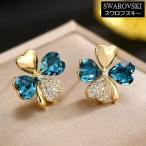 クーポンで15%OFF ピアス レディース スワロフスキー クローバー ブルー 青 ゴールドメッキ スタッド 四つ葉のクローバー 綺麗 大人 可愛い プレゼント ギフト