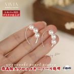 パールピアス レディースピアス フックピアス パール 金属アレルギー対応 シルバー925 プラチナ仕上げ シンプル 3粒 6mm スワロフスキーパール 女性 彼女 ギフト