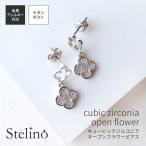 レディース ピアス キュービックジルコニア フラワー 花 クローバー カメリア パヴェ チタン製ポスト 金属アレルギー対応 ダブルデザイン