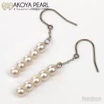 アコヤ真珠 ベビー パール ピアス 5珠 フック レディース ホワイト 4.0-4.5mm チタン 保管用ケース付 揺れる ニッケルフリー 両耳用 (4021)