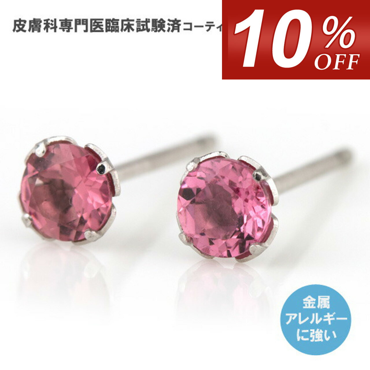 【特別価格10%OFF! 12/11 09:59まで】純チタン (TITAN) ピンクトルマリン 4mm 10月の誕生石 スタッド ピアス チタンピアス プラチナイオンプレーティング加工商品 金属アレルギー対応 金属アレルギー 安心 アレルギーフリー