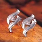 ピアス レディース 波 スプレー シンプル キュービックジルコニア プラチナ仕上げ 爆買