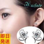 ピアス レディース ハート 蝶々 バタフライ czダイヤモンド プラチナ仕上げ ギフト