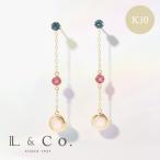 ピアス レディース K10 10金 カラーストーン 宝石 イエローゴールド 両耳 カラフル スタッド 揺れる パステルカラー プレゼント L&Co. エルアンドコー