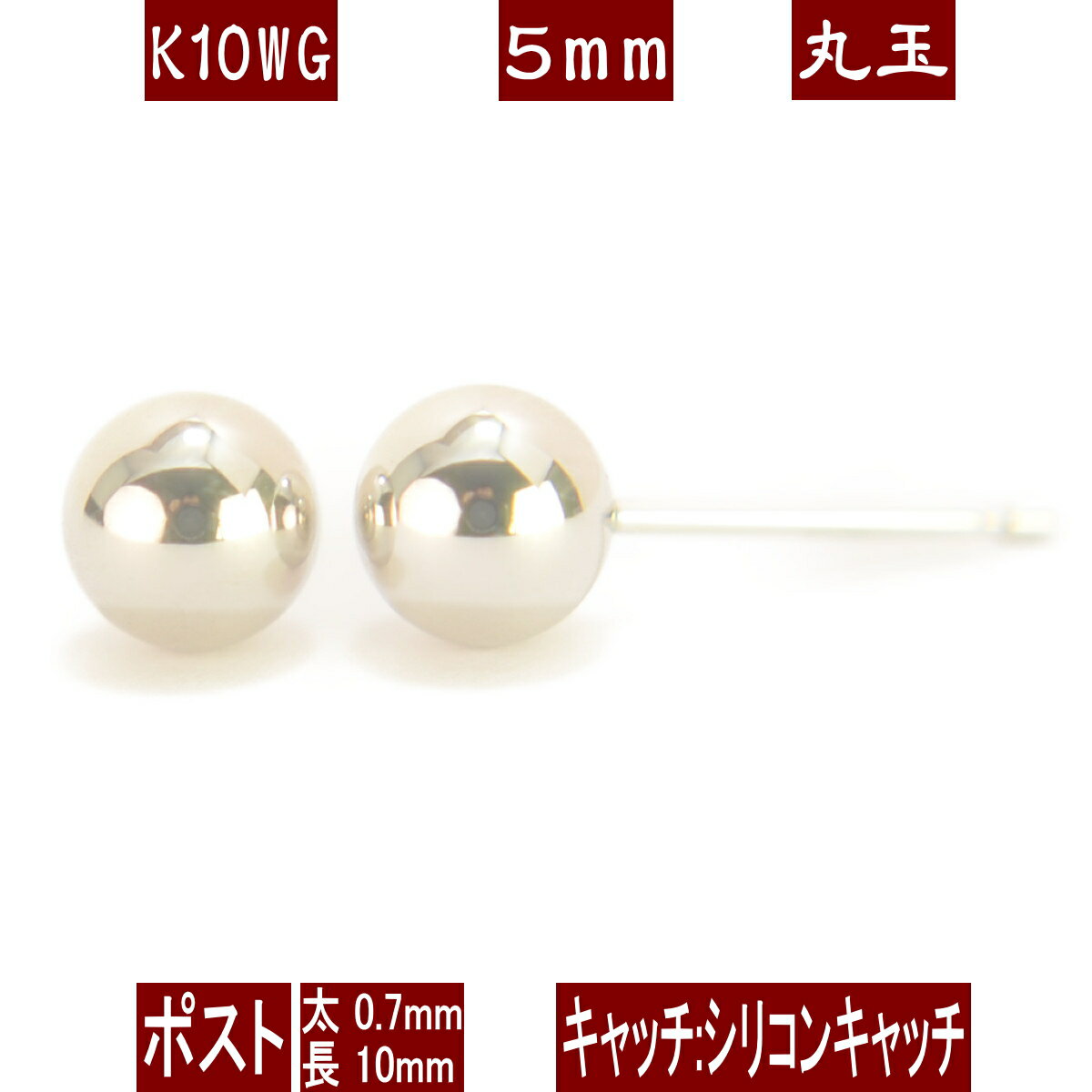 【10%OFF&事前クーポン配布中】K10WGホワイトゴールド丸玉ピアス 5mm ピアス 10k 10金 ピアス k10 ピアス 10金 丸玉ピアス K10 ピアス 10k 丸玉 ピアス ボール ピアス セカンドピアス レディース