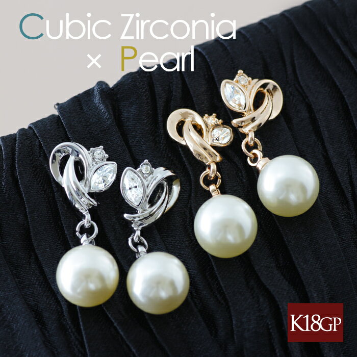 ピアス レディース パール 真珠 ジルコニア 揺れる 18金 18kコーティング ピンクゴールド シルバー K18GP ホワイトゴールド 両耳 プレゼント ギフト アクセサリー パールピアス シンプル 上品 フォーマル 結婚式 卒業式 入学式 誕生日 女性 妻 嫁 大人 かわいい おしゃれ