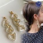 ピアス レディース ゆれる パール リング ハート 四角 菱形 ロング 2連 2色 揺れる パーティー アクセサリー ポイント消化