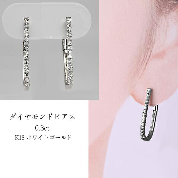 【10%OFFクーポン利用で】(246742)ダイヤモンド ピアス 0.5カラット フープピアス 18kホワイトゴールド 両耳 1ペア レディース 女性プレゼントK18WG