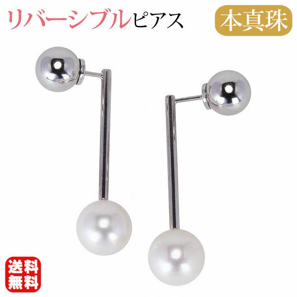 【10%OFF 12/3 20時より】ピアス リバーシブル 表裏 ボールキャッチ 360度 自由自在 ライン ストレート あこや本真珠 8mm k18ホワイトゴールド ペア レディース 保証書付 送料無料 人気 おすすめ カジュアル プレゼント ギフト ジュエリー ブラックフライデー