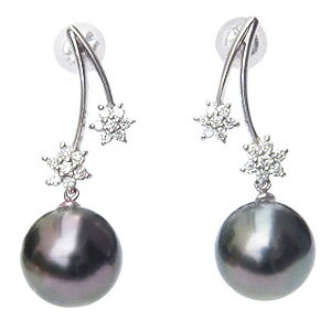 【10%OFF 12/3 20時より】パール ピアス 18金 18k 18k k18 タヒチ黒蝶真珠 タヒチ ブラック 真珠 ホワイトゴールド ペア ダイヤモンド ぶら下がり ゆれる 揺れる 送料無料 普段使い 人気 おすすめ プレゼント ギフト ジュエリー ブラックフライデー
