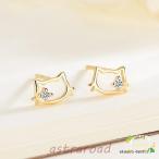 ピアス レディース 猫 ネコ かわいい CZダイヤ プラチナ仕上げ シルバー925 ゴールド 女性 誕生日プレゼント