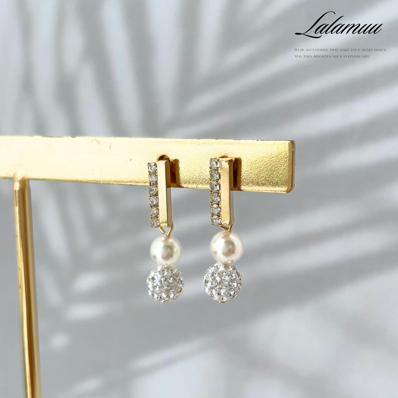[全品45%OFFクーポン配布]ラインストーン パール ピアス レディース アクセサリー 送料無料 かわいい きれい 上品 パーティ 華やか 結婚式 二次会