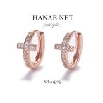 ピアス レディースフープピアス クロスモチーフ ピンクゴールド シルバー925 ラインストーン 両耳2個セット