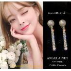 ピアス レディース ジルコニア ロングピアス ラインストーン K18GP ゴールド金色 パール 925銀針