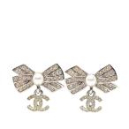 シャネル ココマーク パール リボン モチーフ ピアス シルバー ラインストーン メタル レディース CHANEL 【中古】