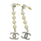 CHANEL シャネル ココマーク ラインストーン パール ドロップ スイング ハート ピアス レディース B24B