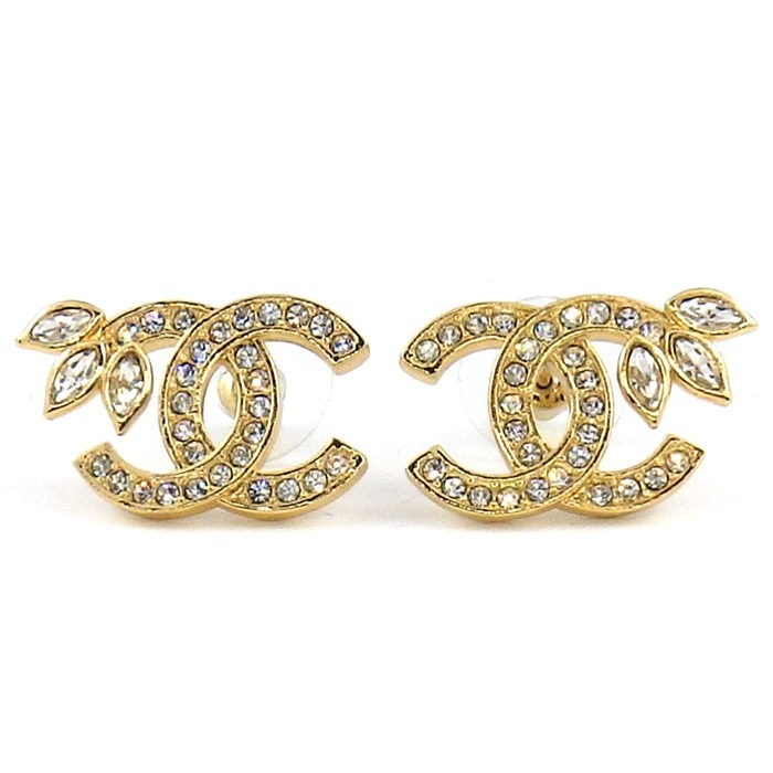 [5%OFFクーポン対象&まとめ買い10%OFF]シャネル CHANEL ココマーク ピアス ジュエリー GP(ゴールドメッキ) ラインストーン レディース ゴールド系 / クリア系 / ブラック系 【中古】