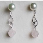 パールピアス 薔薇 バラ ローズ ホワイトゴールド製 アコヤ真珠 伊勢志摩産 レディースアクセサリー ローズクォーツ 1点もの