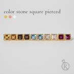 【11/28午後値上げ実施】 K18 カラーストーン スクエア ピアス レディース シトリン スモーキークオーツ ブルートパーズ ローズクォーツ ガーネット rph43680123