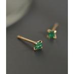 ピアス 「K10」スクエアカットエメラルドスタッドピアス/天然石「動画あり」 レディース メンズ