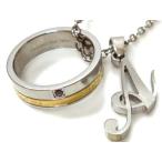 ダナスダイヤモンドイニシャルリングネックレス/ダイヤモンド/天然/ステンレス/アクセサリー/ゴールド 刻印 無料 年度末 sale