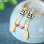 アクセサリー 上品 ピアス レディース 天然石 バレンタイン 母の日 オレンジ 赤 ネフライト アゲート エナメルグレイズ