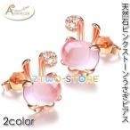 ピアス うさぎ シルバー 可愛い 天然石 ピンクストーン ファッション小物 レディースピアス