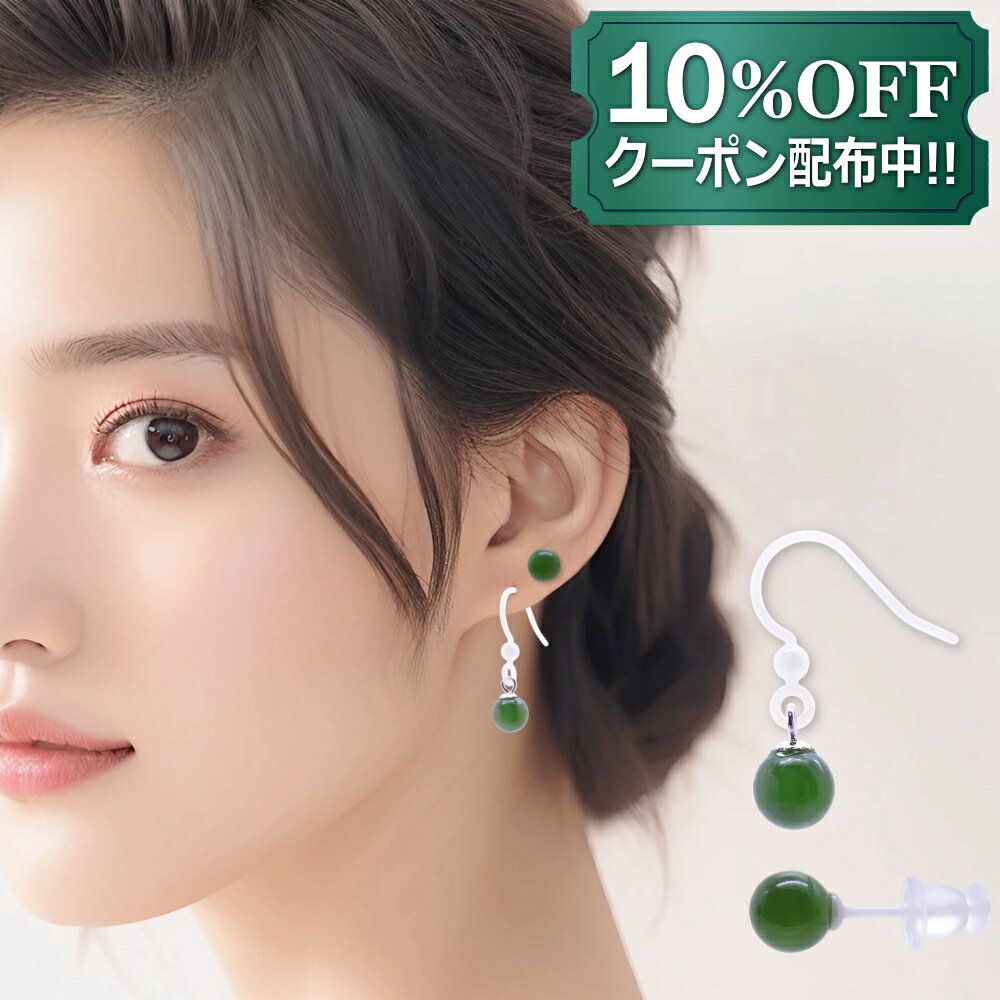 【10%OFFクーポン配布中】翡翠 ピアス つけっぱなし 金属アレルギー対応(セラミック)2個セット レディース メンズ ファーストピアス セカンドピアス ヒスイ 天然石 スタッド フック