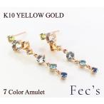 ピアス レディース アレルギー対応 ニッケルフリー K10YG 10金 イエローゴールド アミュレット 天然石 7色 お守り マルチカラー カラフル スタッドピアス