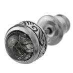 ピアス メンズ レディース シルバー925 ルチルクォーツ スタッドピアス 天然石 彫刻 丸 メンズピアス パワーストーン 片耳用 (1個売り)