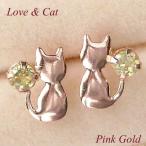 ペリドット ピアス 天然石 レディース 50代 40代 60代 30代 20代 猫 8月誕生石 ねこ ネコ 10金ピンクゴールド クリスマス k10pg アニマルモチーフ ギフト