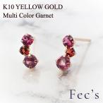 ピアス レディース アレルギー対応 ニッケルフリー K10 10金 イエローゴールド マルチカラー ガーネット スタッドピアス 三色 スリーカラー 天然石 誕生石