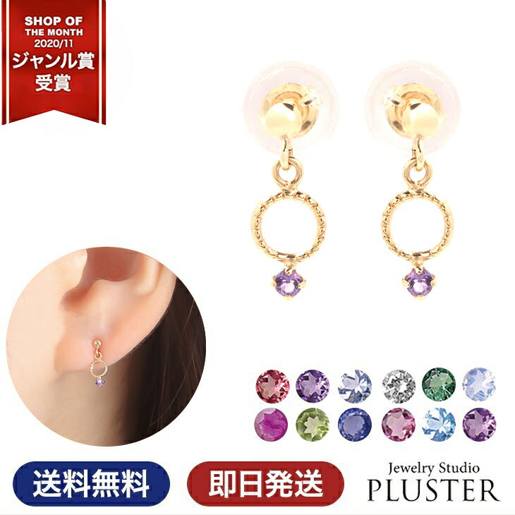 ピアス レディース 金属アレルギー 2月 誕生石 アメジスト 天然石 カラーストーン アクアマリン ダイヤモンド エメラルド ムーンストーン カラーストーン バースデー 一粒 k10 ゴールド ダブルロックキャッチ 華奢 揺れる ニッケルフリー 誕生日 プレゼント