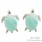 レディース ピアス 亀 ラリマー ホワイトゴールドk18 スタッドピアス 18金 ホヌ ウミガメ 幸運 ハワイ モチーフ 天然石 パワーストーン かわいい