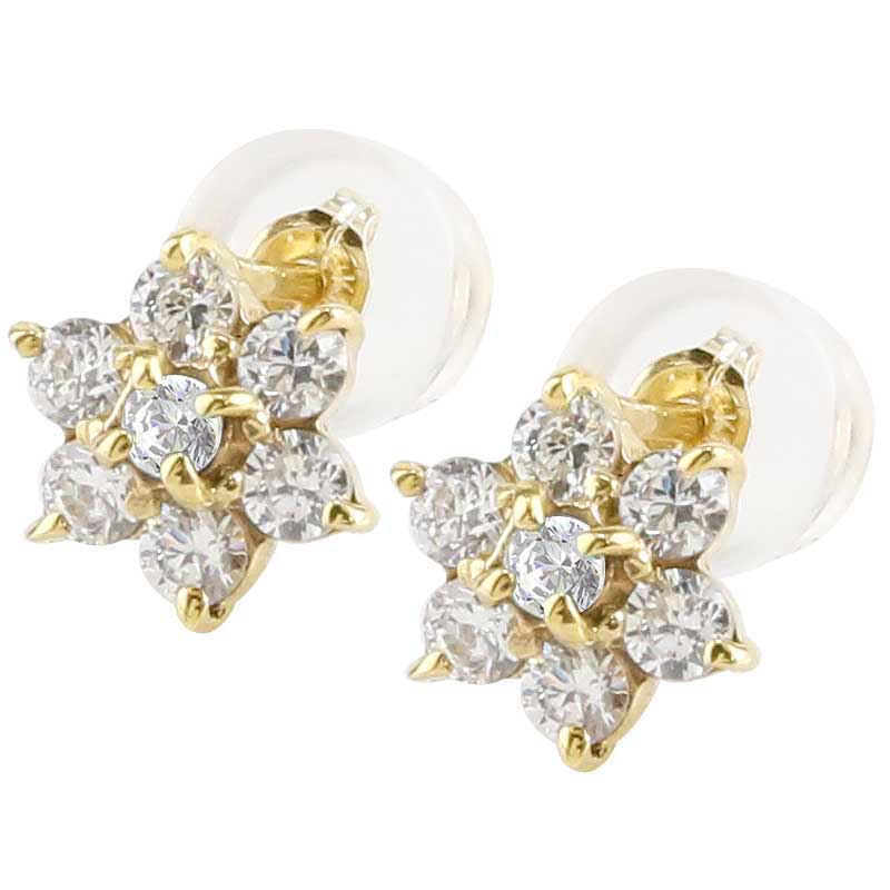 [スーパーセール10%OFF][ポスト長め15ミリ] 18金 ピアス ダイヤモンドピアス 花 フラワー ピアス イエローゴールドk18 18k スタッドピアス 天然石 ダイヤ 4月誕生石 レディース 男女兼用 ユニセックス 男女問わず