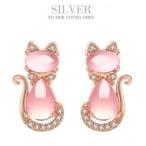 ピアス アレルギー対応 レディース 18K 猫 ネコ ねこ ピンク 水晶 18金 つけっぱなし シルバー925 スタッド 金属アレルギー対応