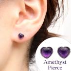 アメジスト ピアス レディース スタッドピアス ハート 天然石 紫水晶 パワーストーン おしゃれ かわいい SILVER925 金属アレルギー対応 両耳用 2月 誕生石 爆買